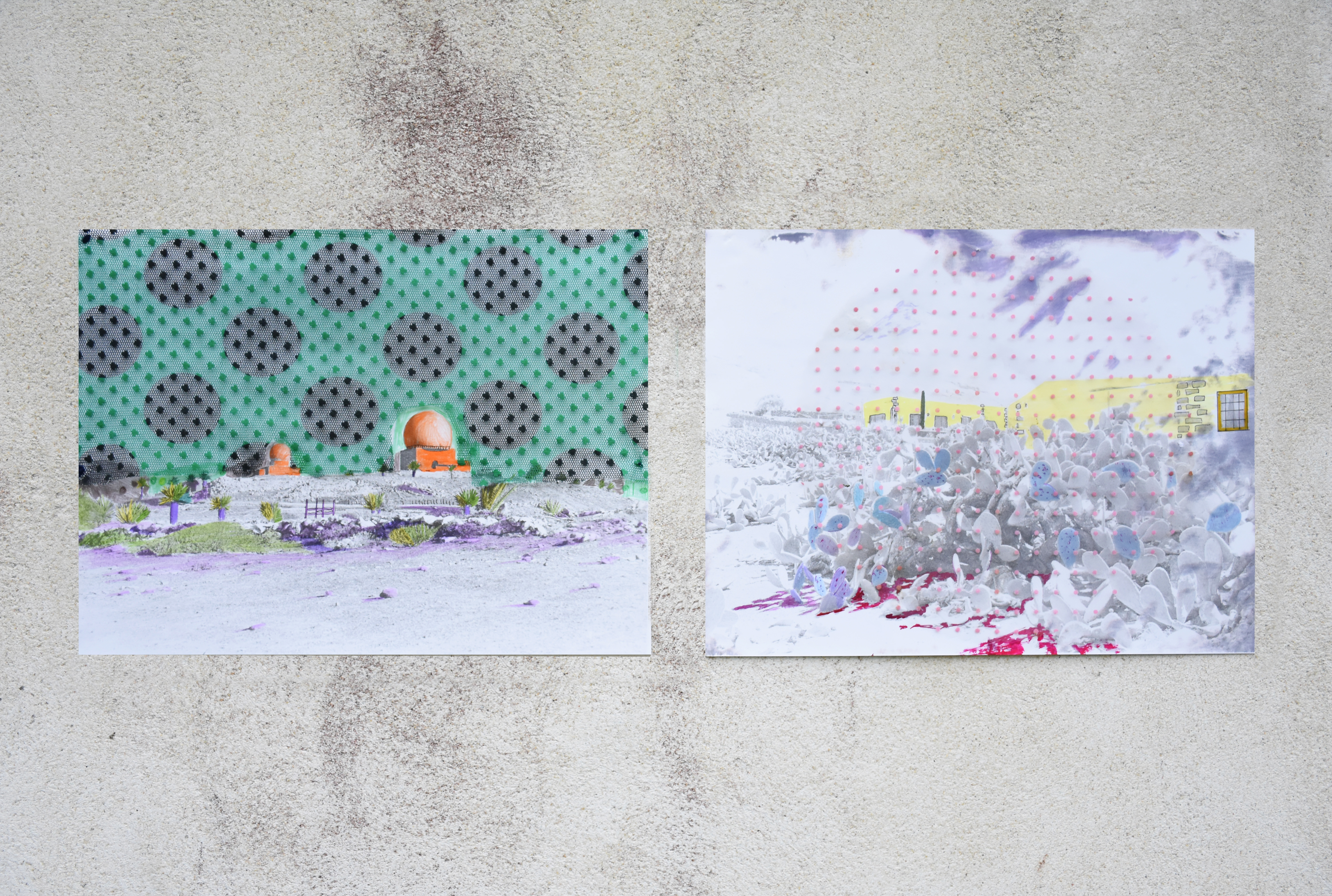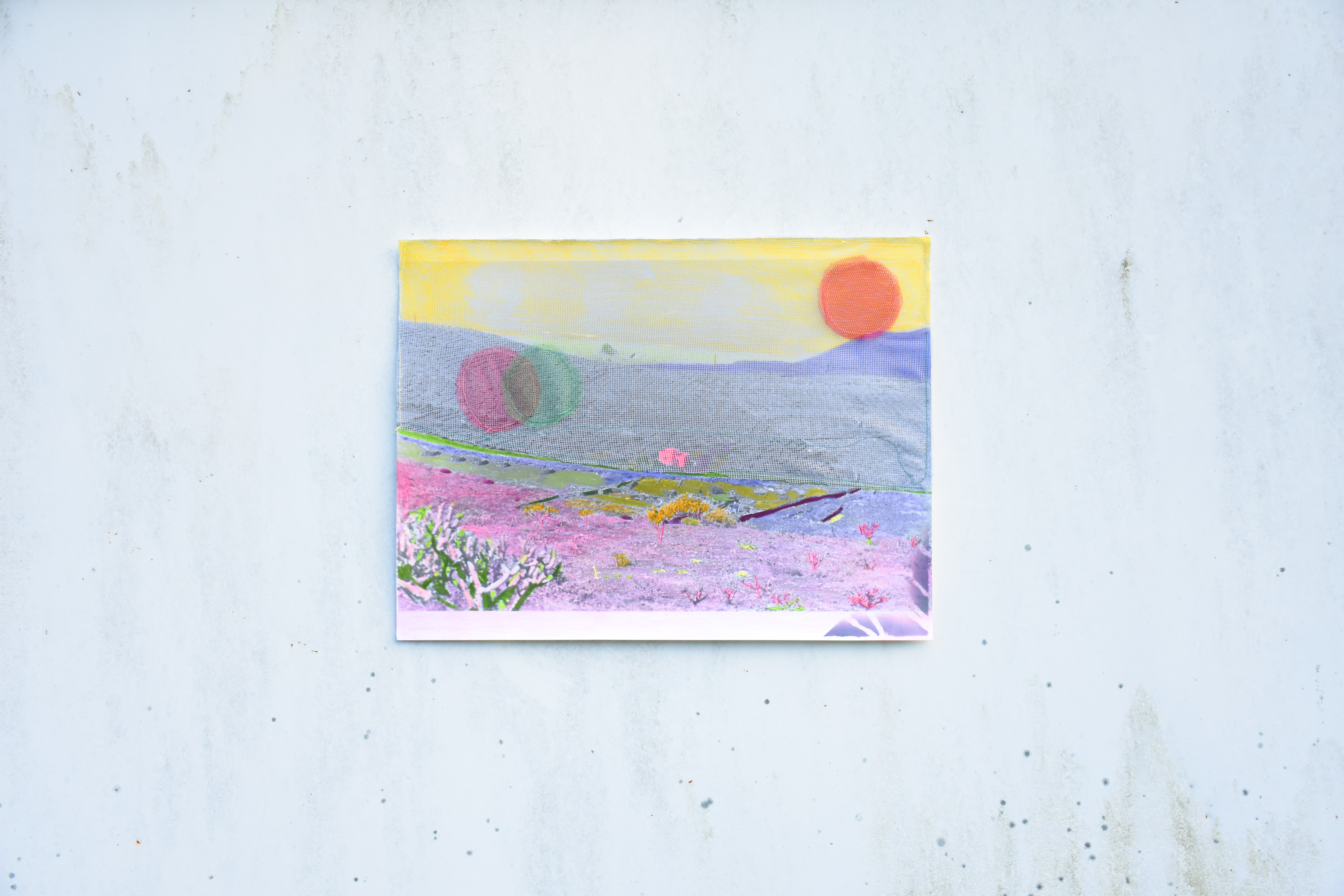 The process does not stop at capture. Once the prints are made, the artist intervenes by applying paint, adding a tactile and expressive layer to each piece. Textile elements are then incorporated through collage techniques, blending photography with textile art to create multidimensional compositions.
